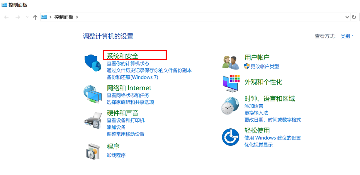 - 点击系统和安全。
