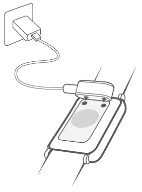 - 将穿戴产品放置在充电底座上,确保穿戴产品背部的充电口与充电底座的金属触点对齐、贴合,直到穿戴产品屏幕出现充电指示。