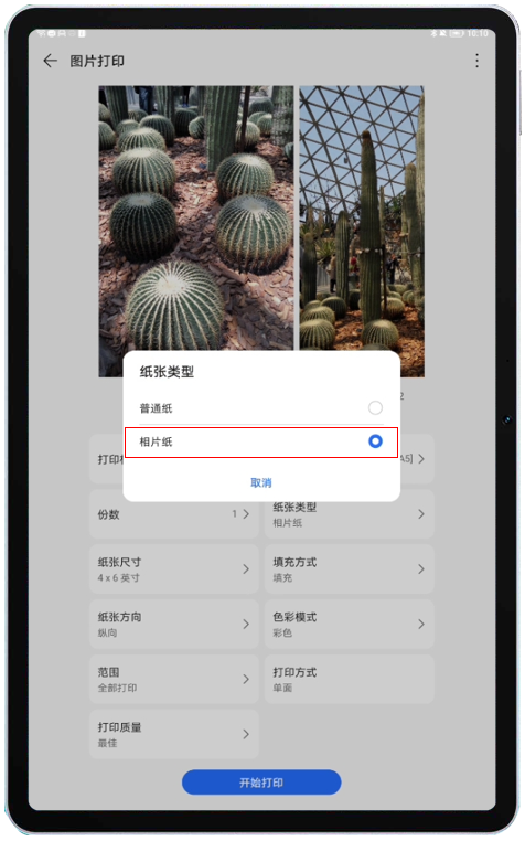 - 请在打印助手预览界面检查纸张类型参数是否设置为相片纸。