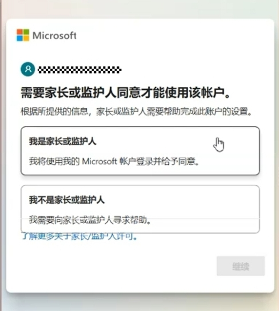 如果要为孩子创建帐户,家长或监护人还需要登录才能完成帐户设置。