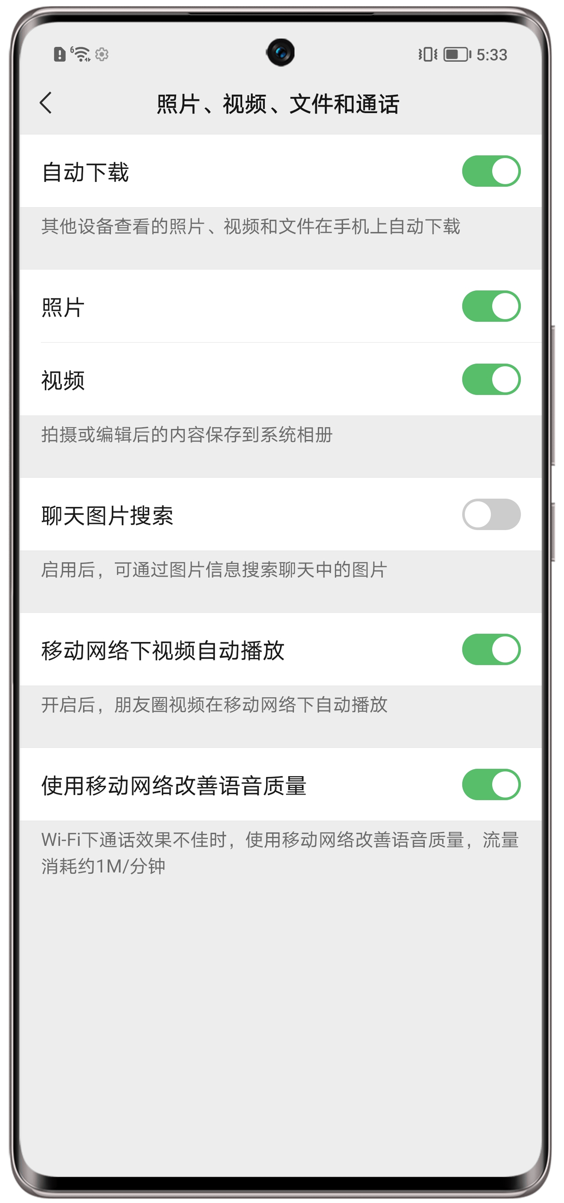 现象三:微信自动下载照片、视频和文件。