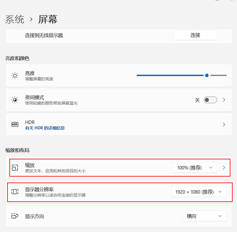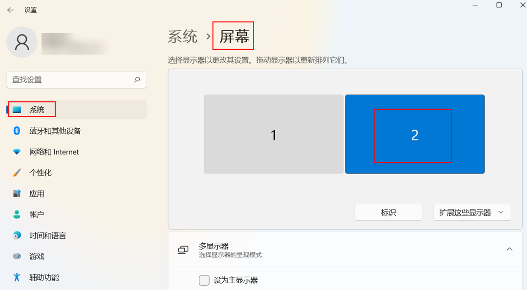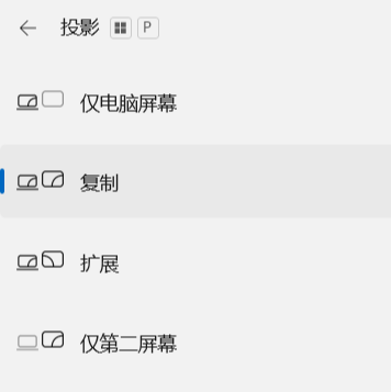 此操作仅适用于“投影”方式为 “扩展”或“仅第二屏幕”的外接显示器,“投影”方式为“复制”与“仅电脑屏幕”的外接显示器无法单独调节屏幕清晰度。