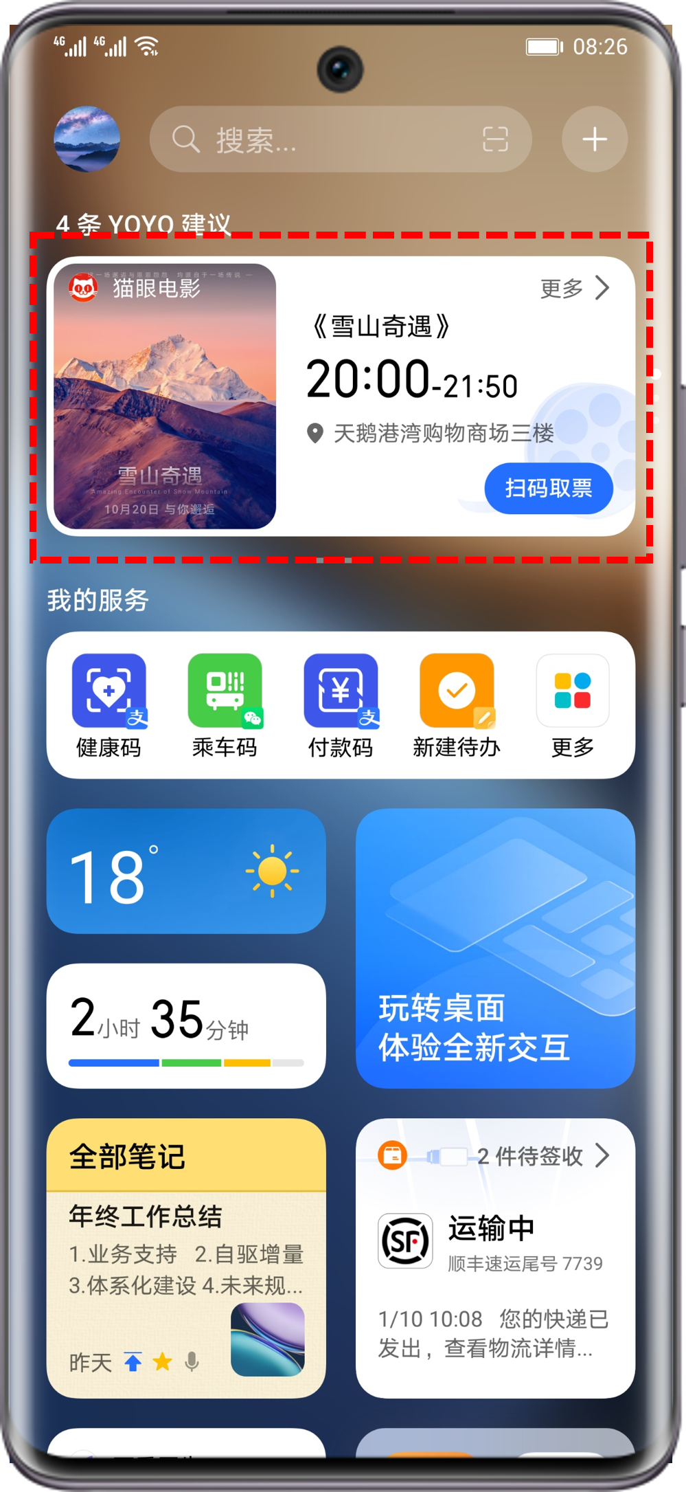 YOYO建议现推出观影、观演提醒功能,绑定猫眼账号或在淘票票、大麦APP内购票成功,临近电影、演出开场,可享受观影提醒和一键取票服务。