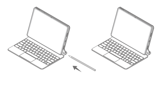 平板和键盘通过蓝牙连接后,将手写笔插入键盘的收纳筒,进行配对或充电。