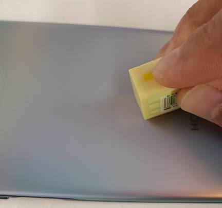 外壳标签或贴纸(如核酸贴纸)与壳体长时间粘贴后,标签上的胶水会扩散溶解,撕除标签时胶水会残留在壳体上形成印痕。因壳体有特殊纹理效果,印痕不容易擦拭去除。