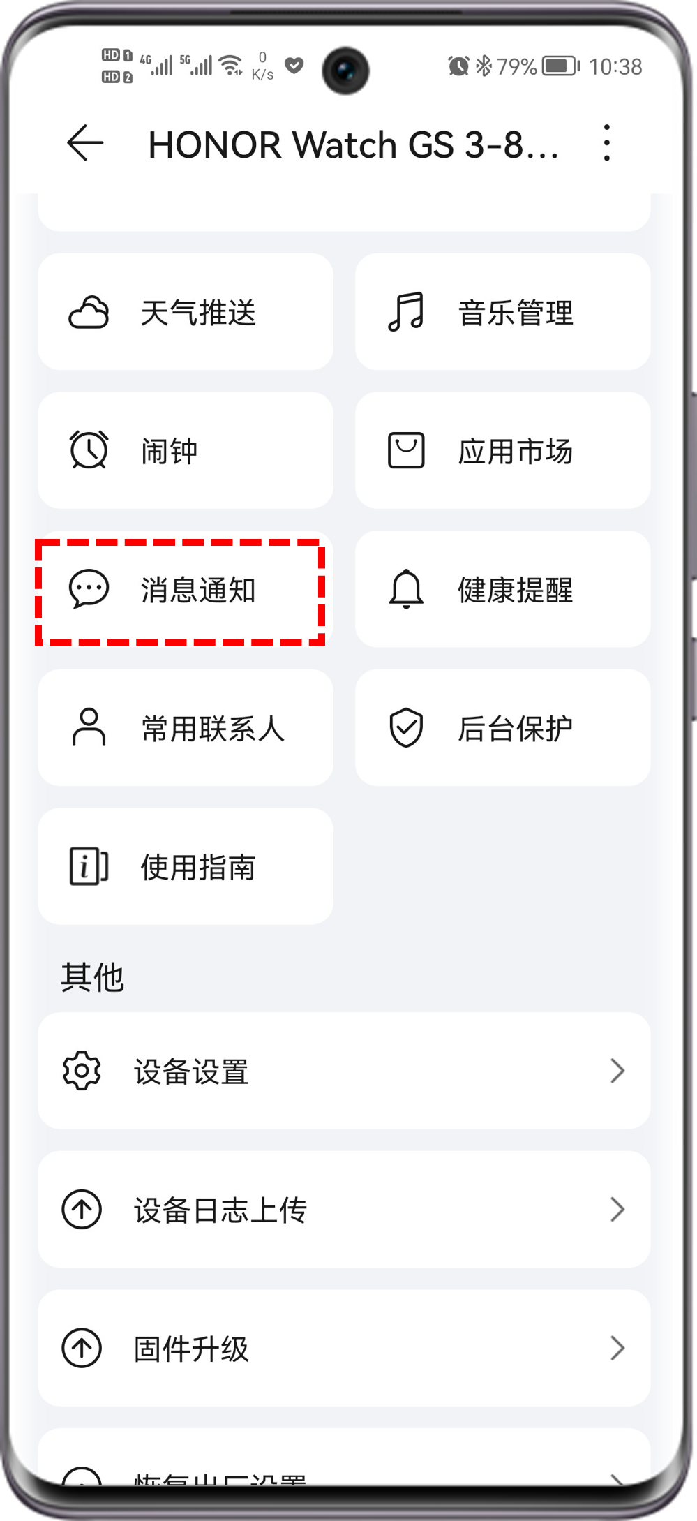 您可以在荣耀运动健康 > 设备 > 已连接的设备 > 消息通知中选择打开或关闭消息通知开关。