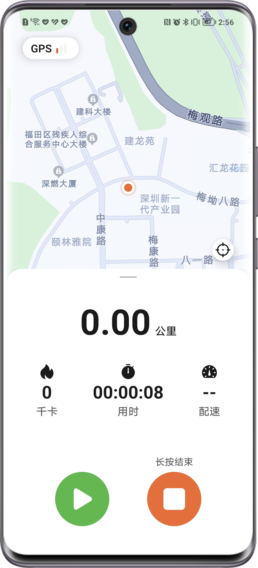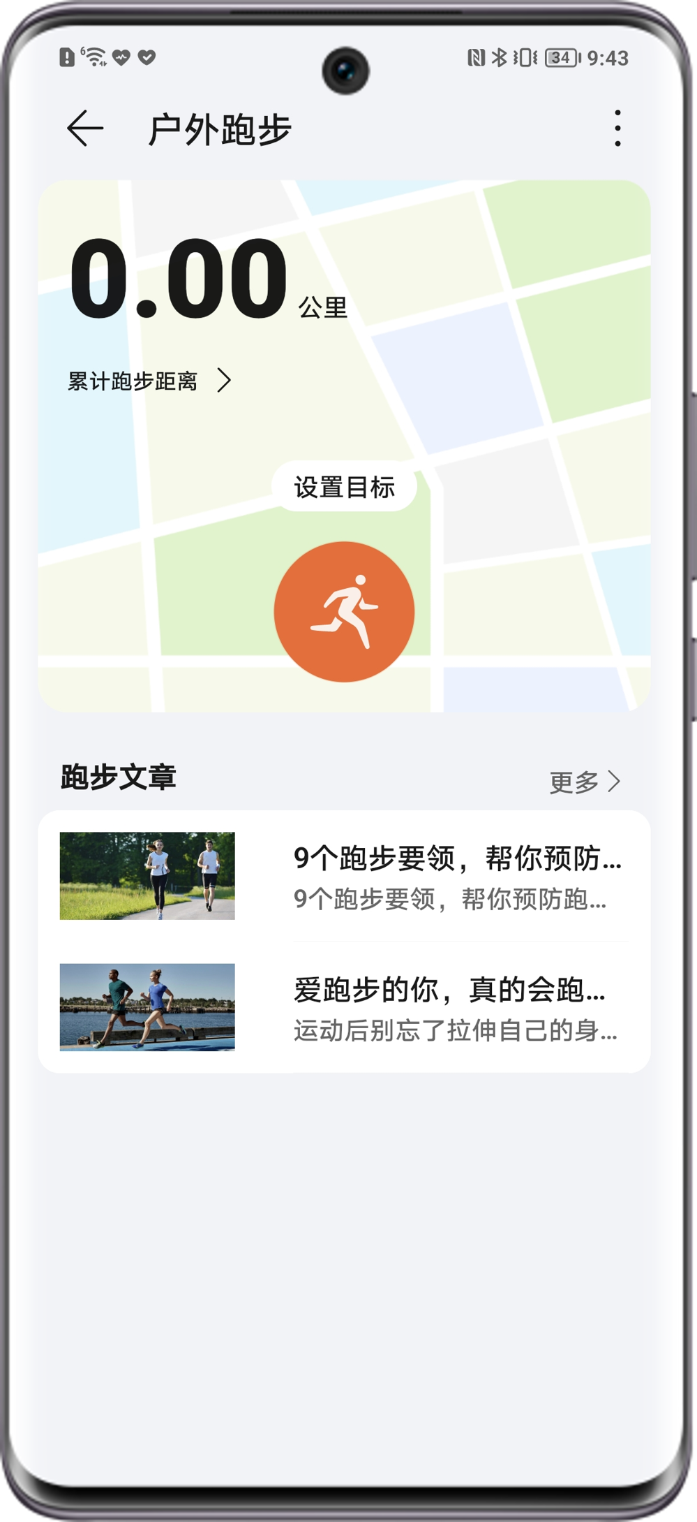 在荣耀运动健康APP中,以户外跑步为例,点击设置目标可以设置您的跑步距离、时间和热量目标(非必选);点击即开始跑步;在跑步过程中您可以点击、、来控制跑步进程中的数据监测。