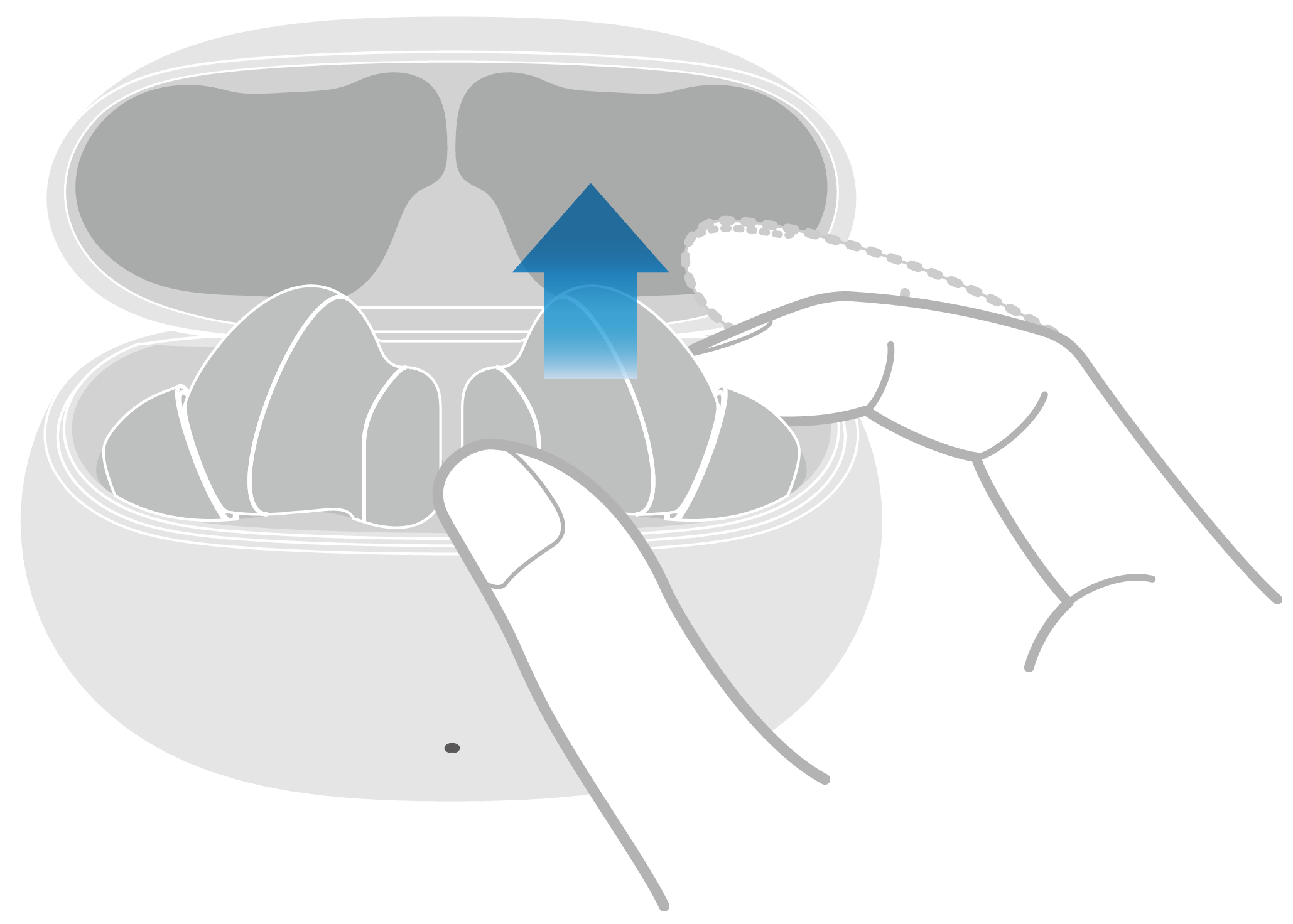 为了方便取出耳机,请使用左手取出左耳机,右手取出右耳机。