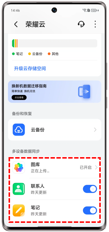 - MagicUI 6.1及以上版本:设置>荣耀账号>数据同步或设置>荣耀账号>荣耀云