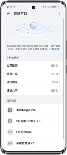 - 请确认您的待连接设备是否支持荣耀智慧互联