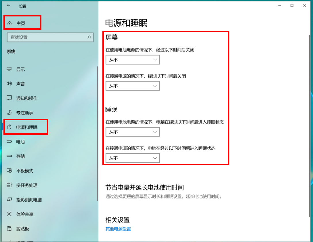 ”,将屏幕和睡眠状态全部设置为“