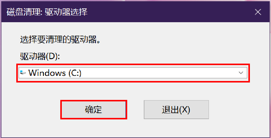 - 选择要清理的磁盘,如C盘,点击“确定”。
