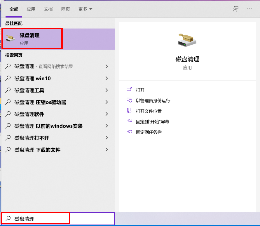 - 在任务栏搜索框中输入“磁盘清理”并打开。