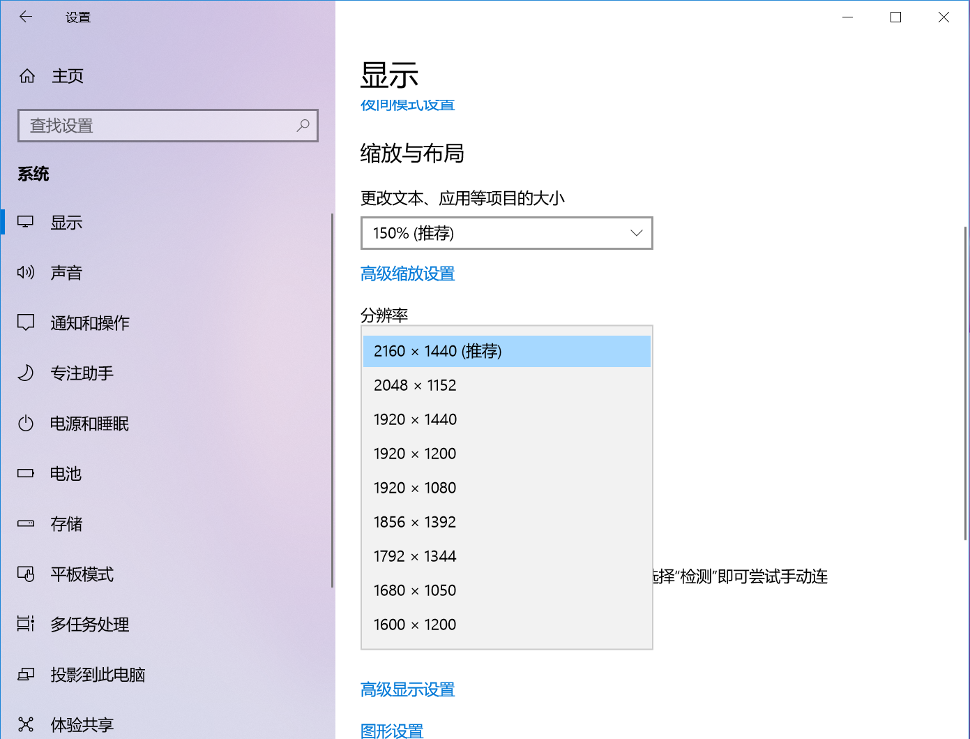 ”下拉列表中选择想要的分辨率。