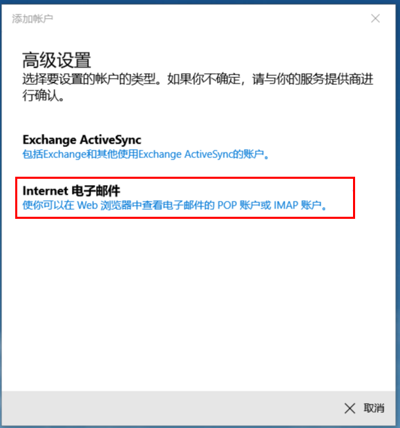 您也可以选择“高级设置”>“ Internet 电子邮件”,然后按界面提示,输入对应邮箱的网页版邮箱配置。
