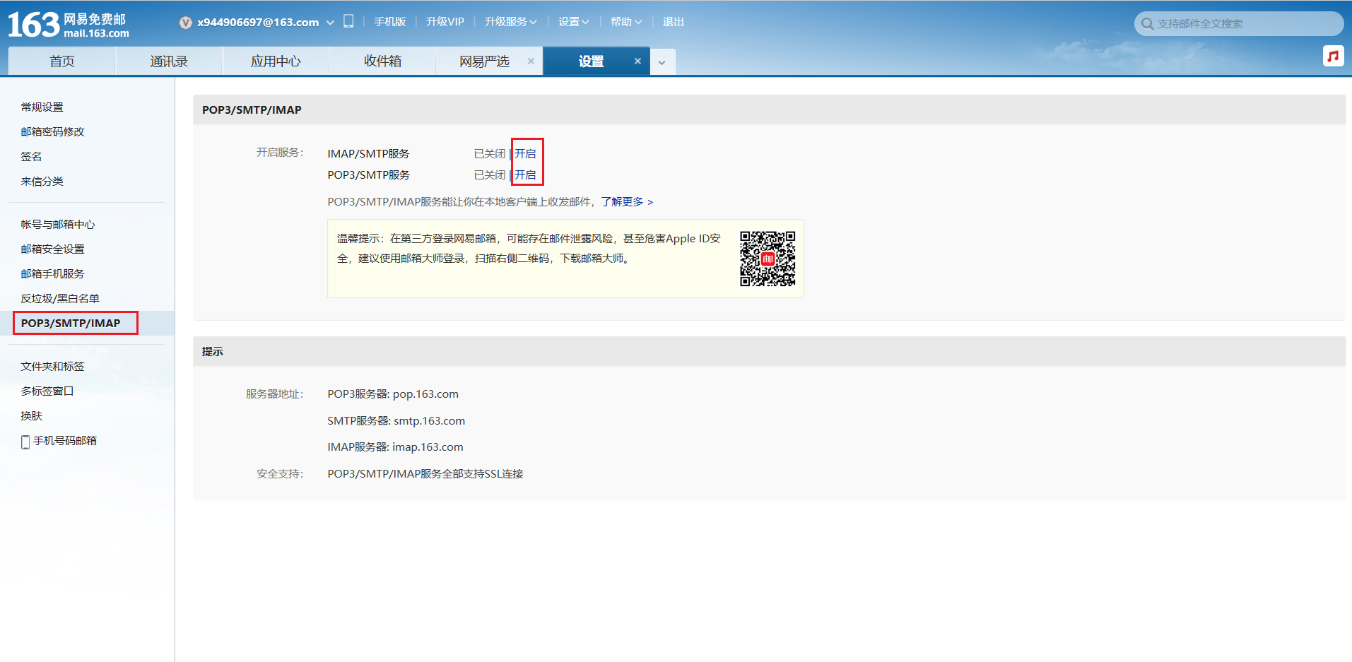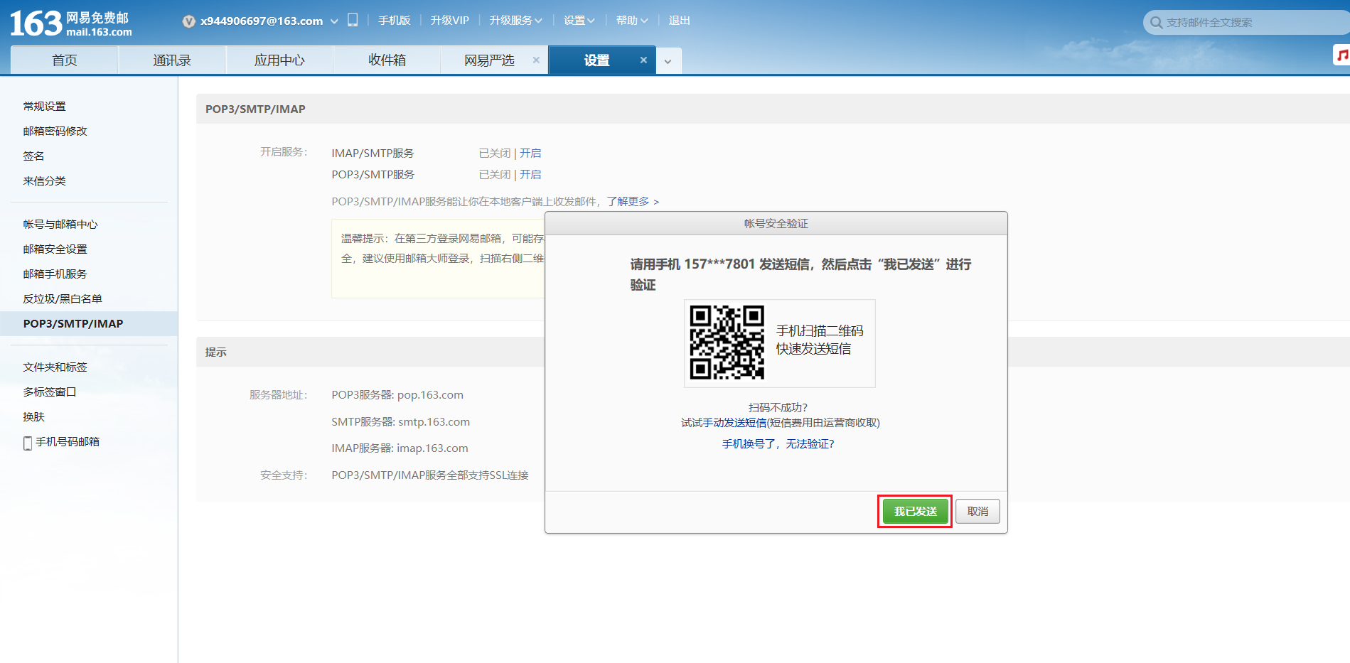 (2)开启IMAP/SMTP服务和POP3/SMTP服务。