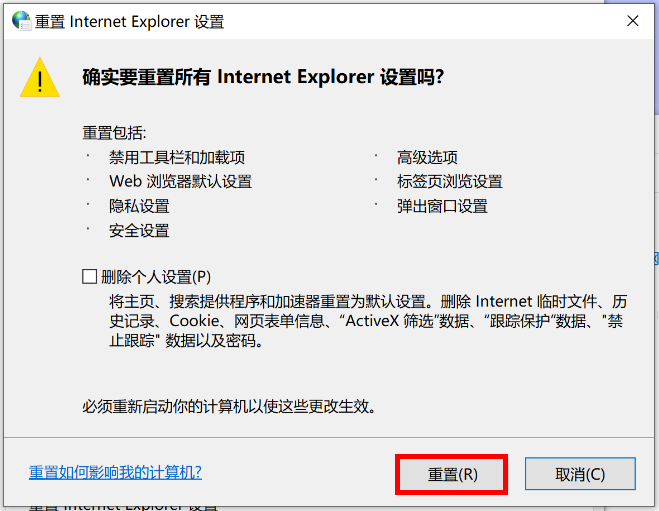 如何重置 Internet Explorer 浏览器