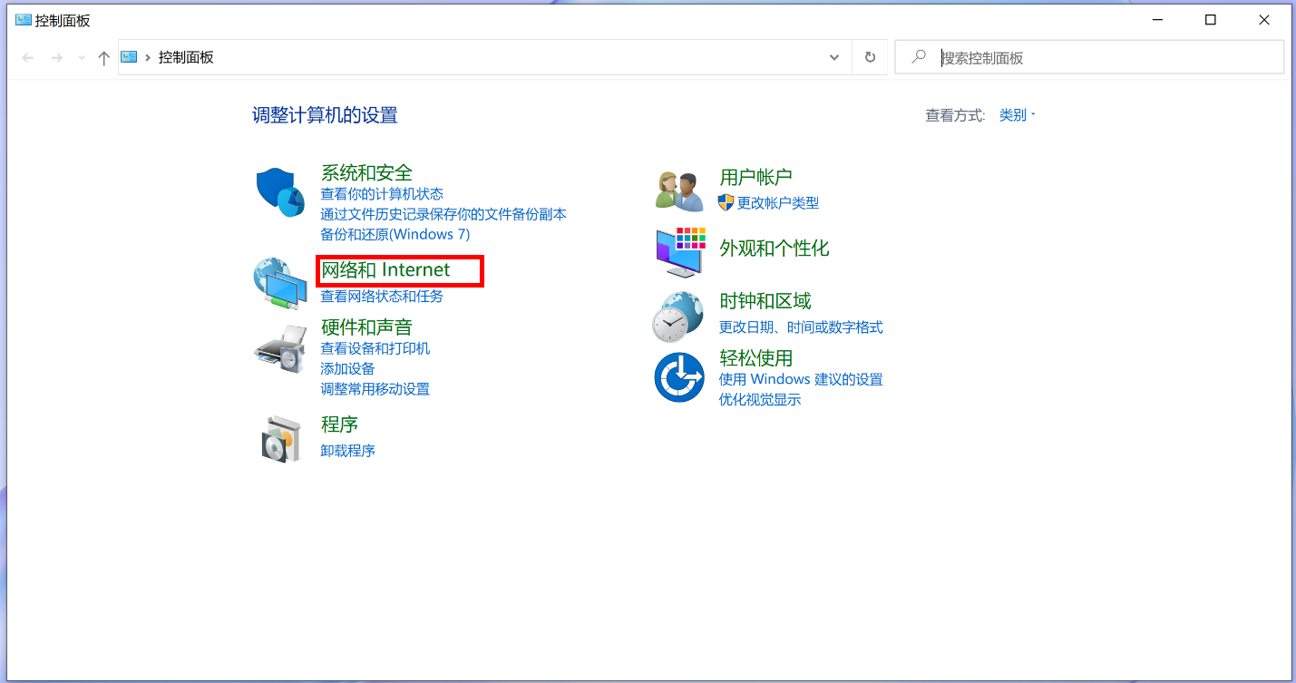 - 选择“网络和 Internet”。