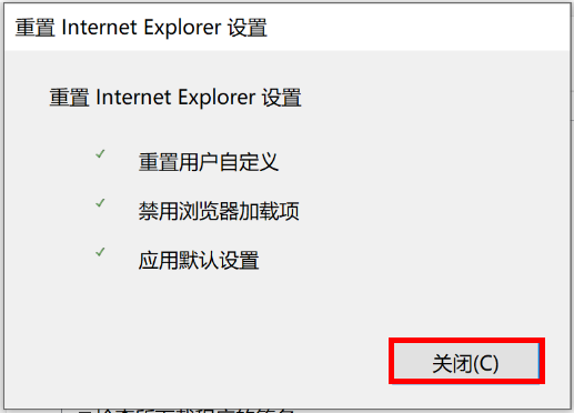 - 重置完成后,点击“关闭”。