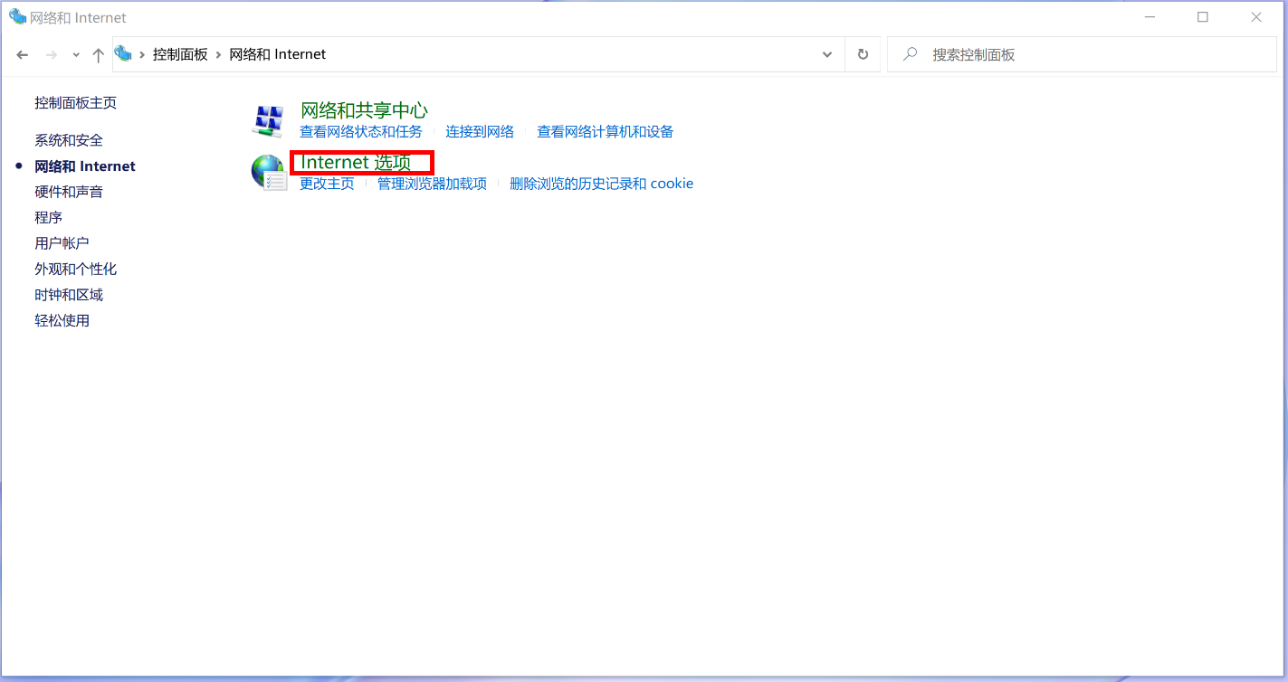- 选择“Internet 选项”。