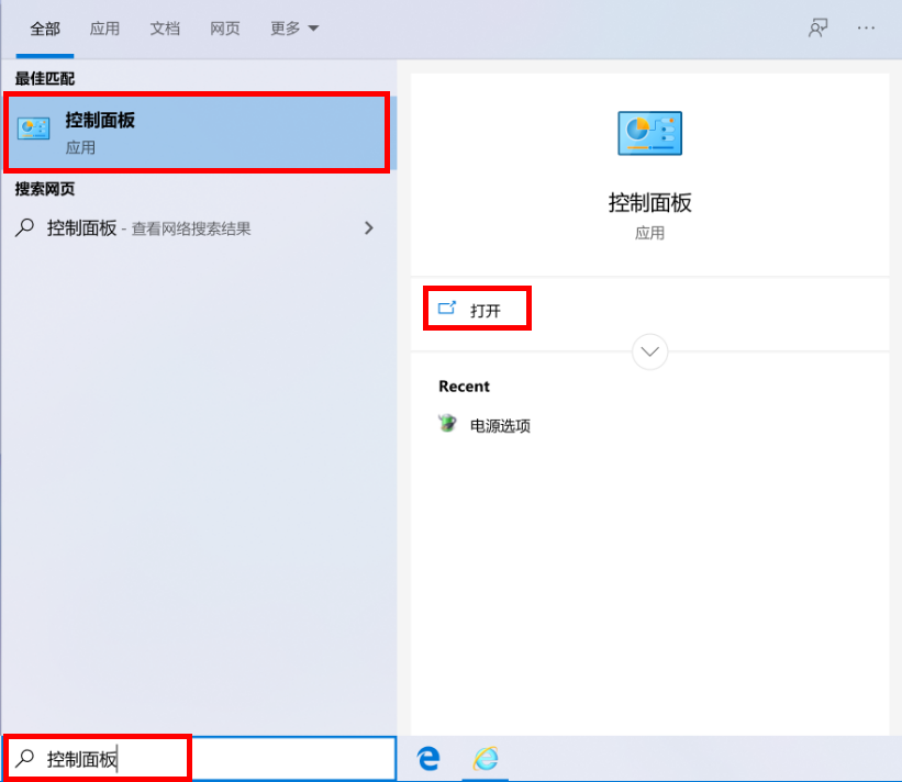 - 在任务栏搜索框中输入“控制面板”并打开。