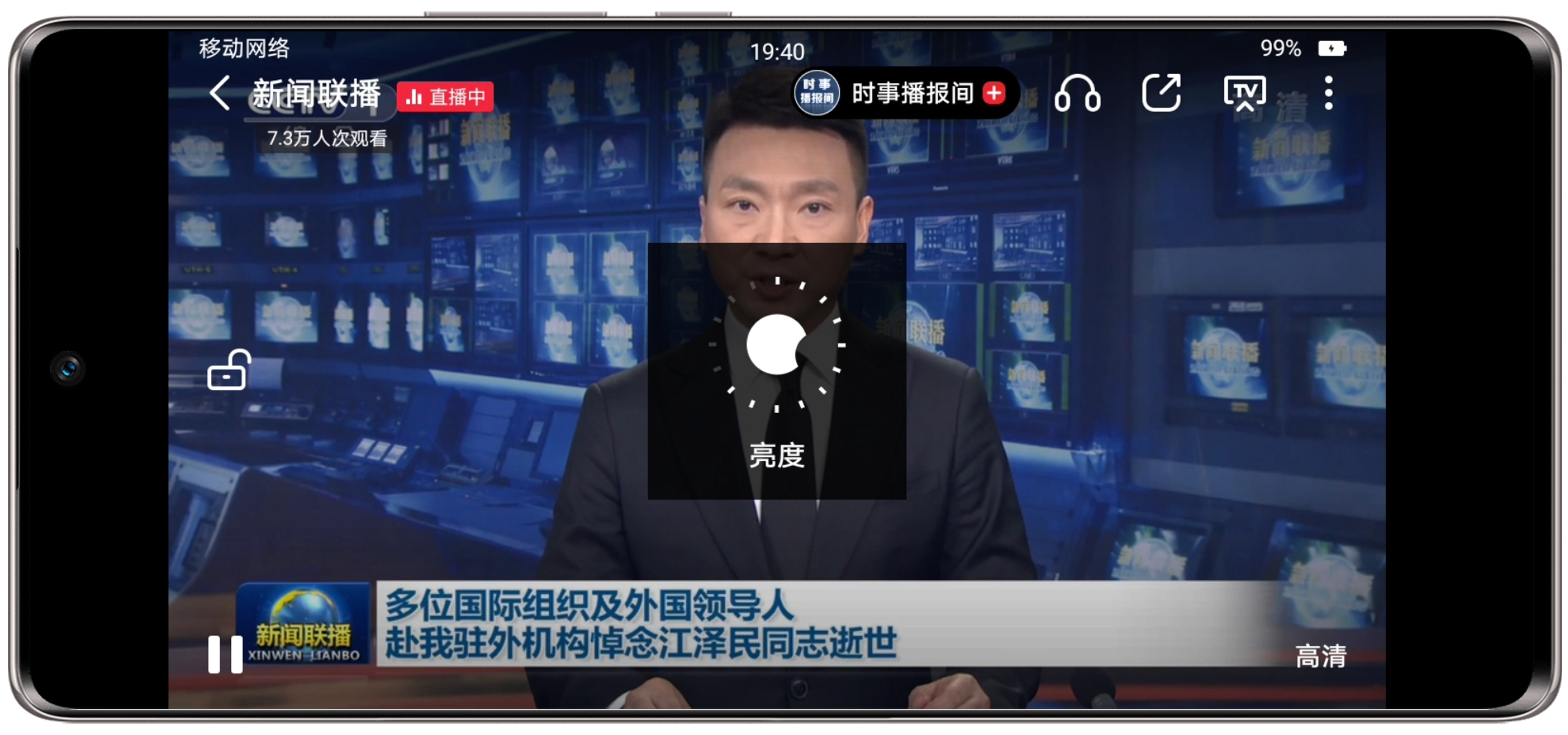 如果需要调节系统亮度可以退出应用后下拉状态栏调节。