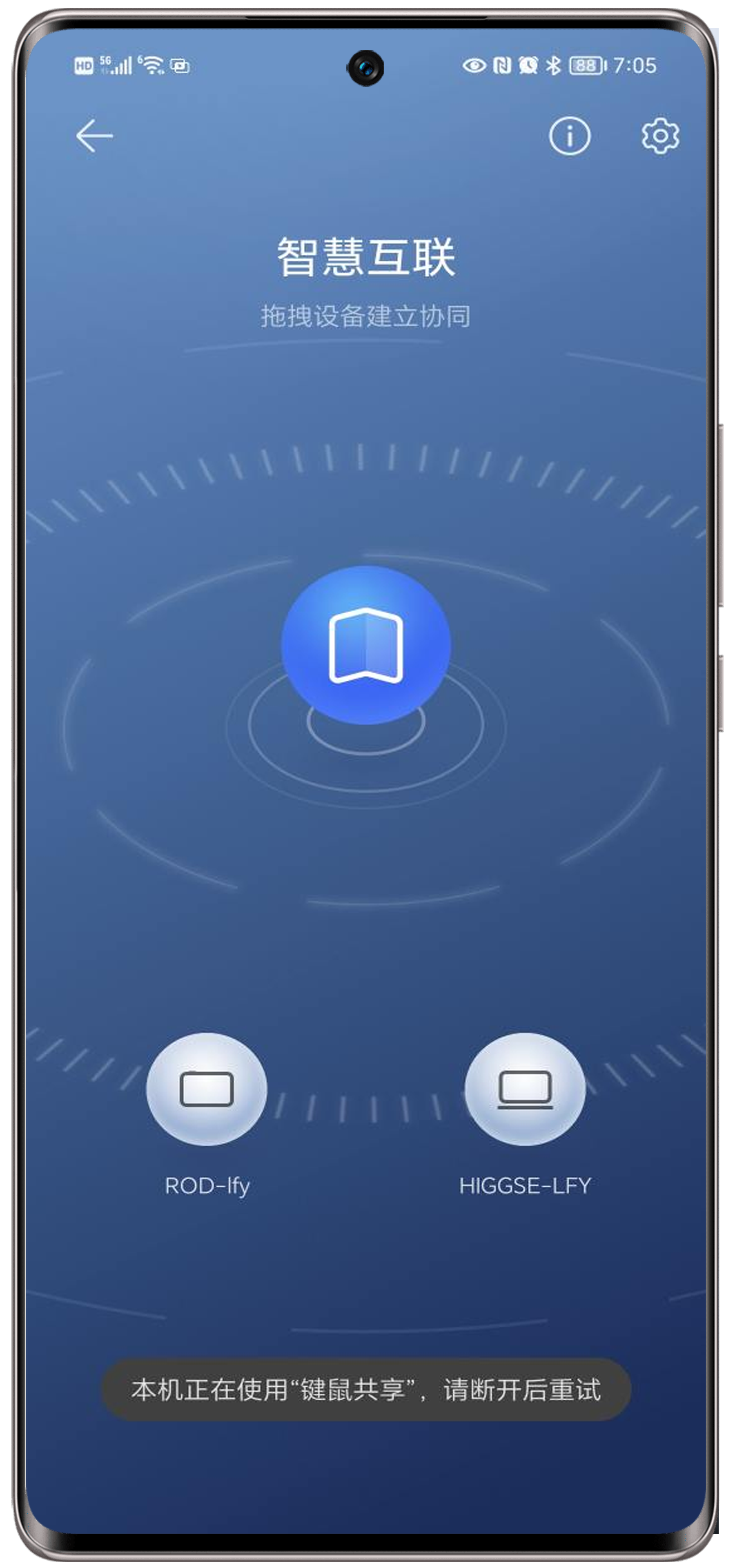 在智慧互联控制中心拖拽设备建立协同业务时,提示:正在使用“XX”,请断开后重试