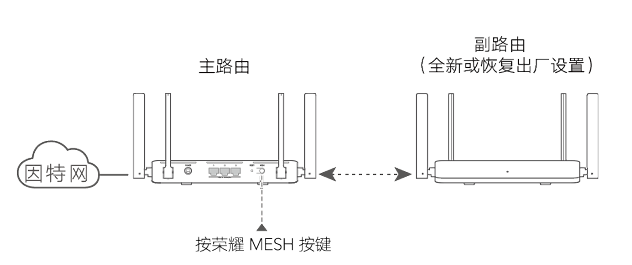 荣耀路由4、荣耀路由4 Pro 及后续发布的路由产品支持荣耀 MESH 组网。