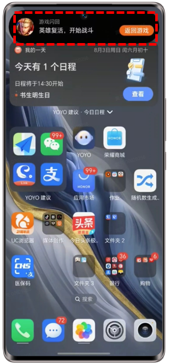 开启/关闭游戏闪回功能:设置>智慧助手/荣耀AI&YOYO>YOYO建议>游戏闪回