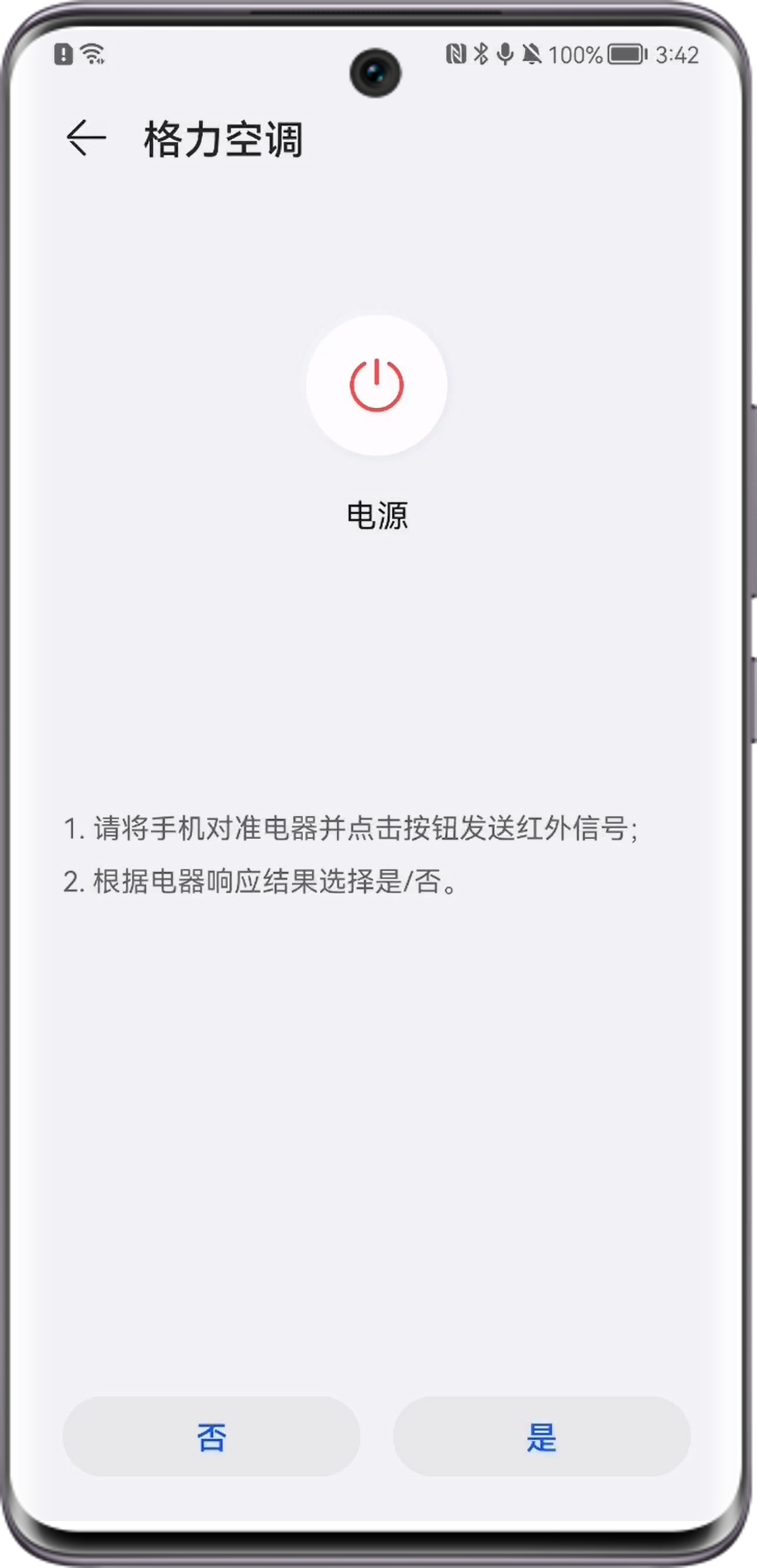 按钮后电器无响应,请点击否继续尝试其他遥控器编码,如无其他编码可尝试但电器仍无响应,请联系设备厂商确认该设备是否支持红外遥控功能。