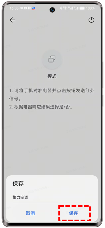 按钮发送红外信号。 - 如电器有响应,请按页面引导继续完成后续按键测试,最后保存遥控器。