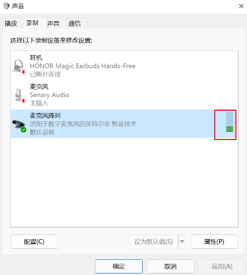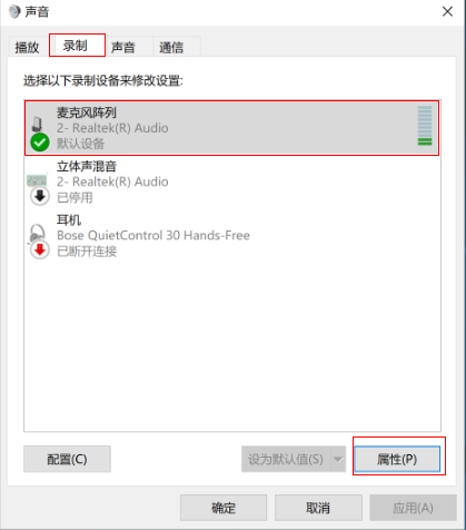 - 测试麦克风:在声音属性窗口,说话时麦克风右边的提示条会有反应。