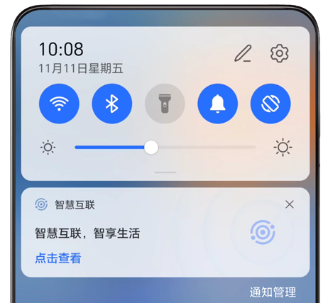 从状态栏向下滑出通知面板,点击智慧互联卡片,进入控制中心。