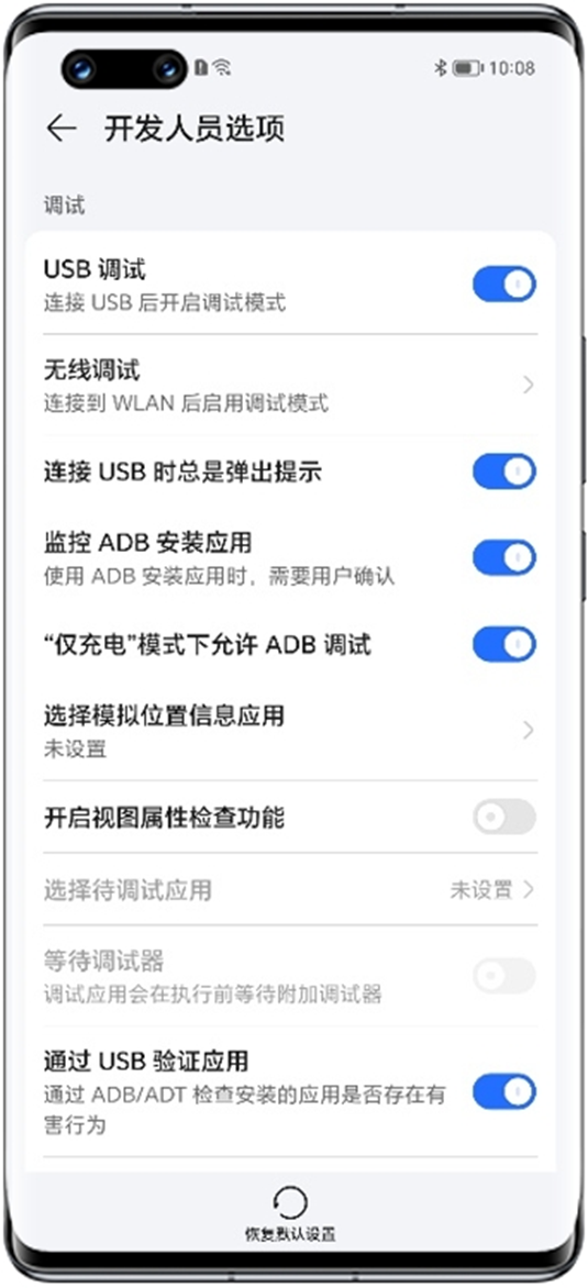 进入手机设置>关于手机>连续点击版本号(7次),激活开发者选项,进入手机设置>系统和更新>开发人员选项,打开USB调试(注:开发人员选项打开后,对系统的性能和功耗会有轻微影响,建议您在需要时开启)。