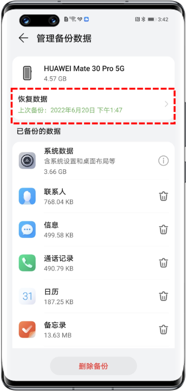 | 将华为云空间的数据恢复至手机/平板 |
