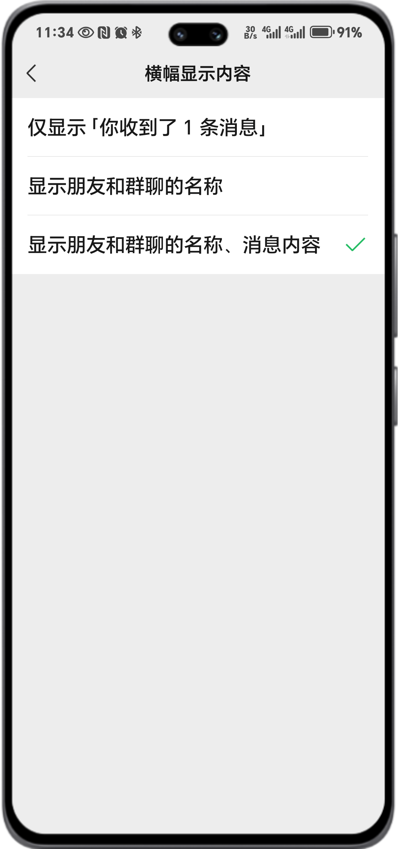 未开启微信应用锁,下拉通知栏,微信消息通知不显示消息详情。