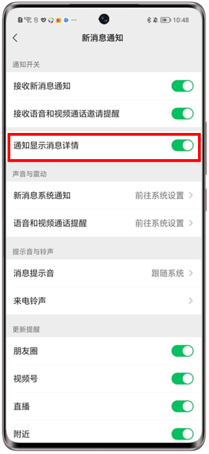 打开微信通知显示消息详情开关即可显示,设置路径:微信>我>设置>新消息通知>通知显示消息详情。