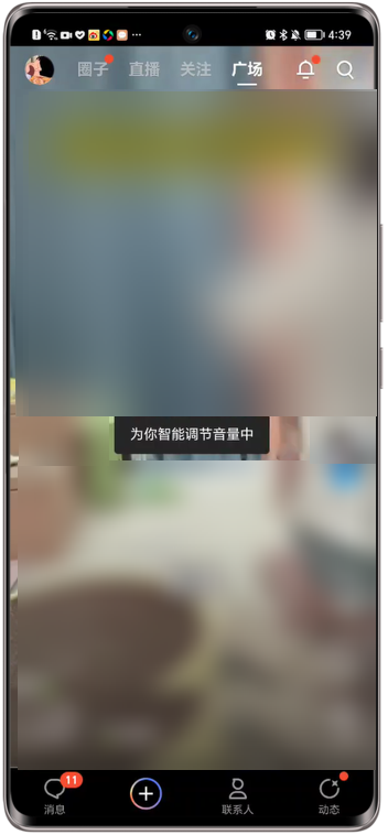 打开QQ小世界后,QQ会自动检测手机音量,如果音量过大则会智能调节手机音量。