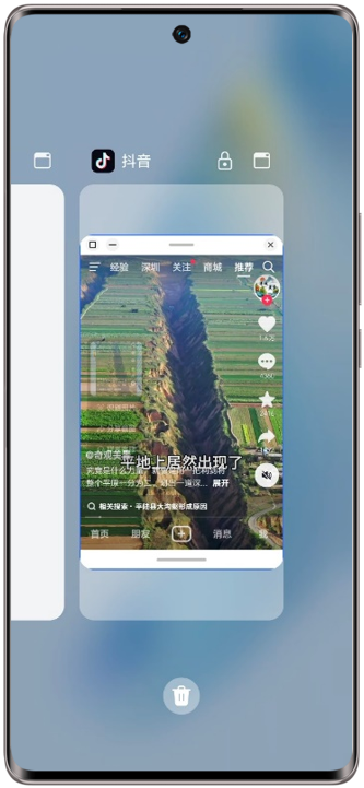 应用悬浮窗模式下关闭后,进入到多任务界面,这个应用在多任务管理界面以悬浮小窗口形式显示。