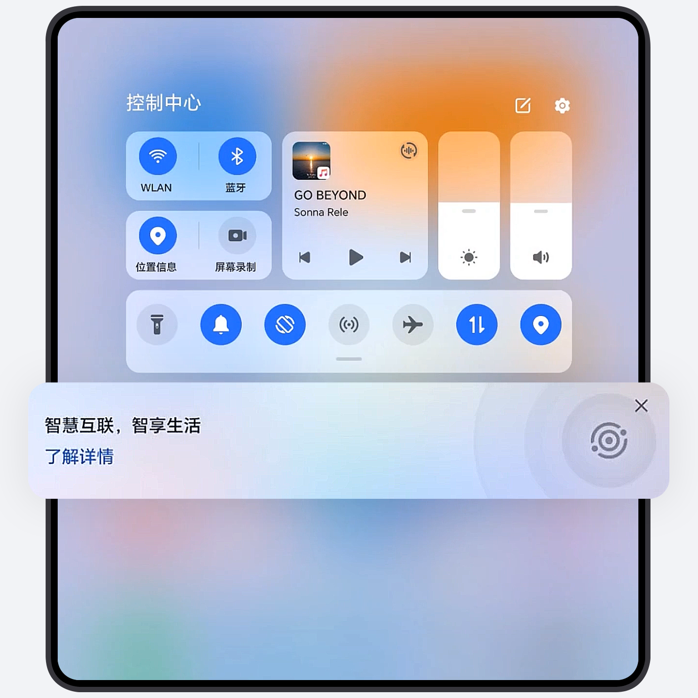 从屏幕顶部右侧下滑出控制中心,点击智慧互联卡片。若删除了通知面板中的智慧互联卡片,点击选择显示智慧互联即可。