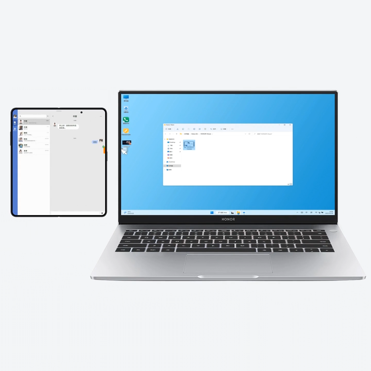 已登录相同荣耀账号的手机、平板等设备,可发现彼此并自动组网连接,形成“信任环”。信息和服务在设备间随心流转、无缝衔接,充分发挥各设备优势,开启高效办公、便捷生活新体验。进入,了解当前机型和版本支持的功能。