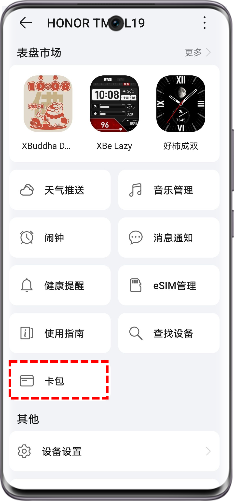 穿戴端:使用荣耀运动健康APP连接手表后,在设备页点击手表卡片进入设备详情页,点击卡包>选择需要退卡的卡片>更多信息>退卡>选择相应的理由>继续退卡>完成