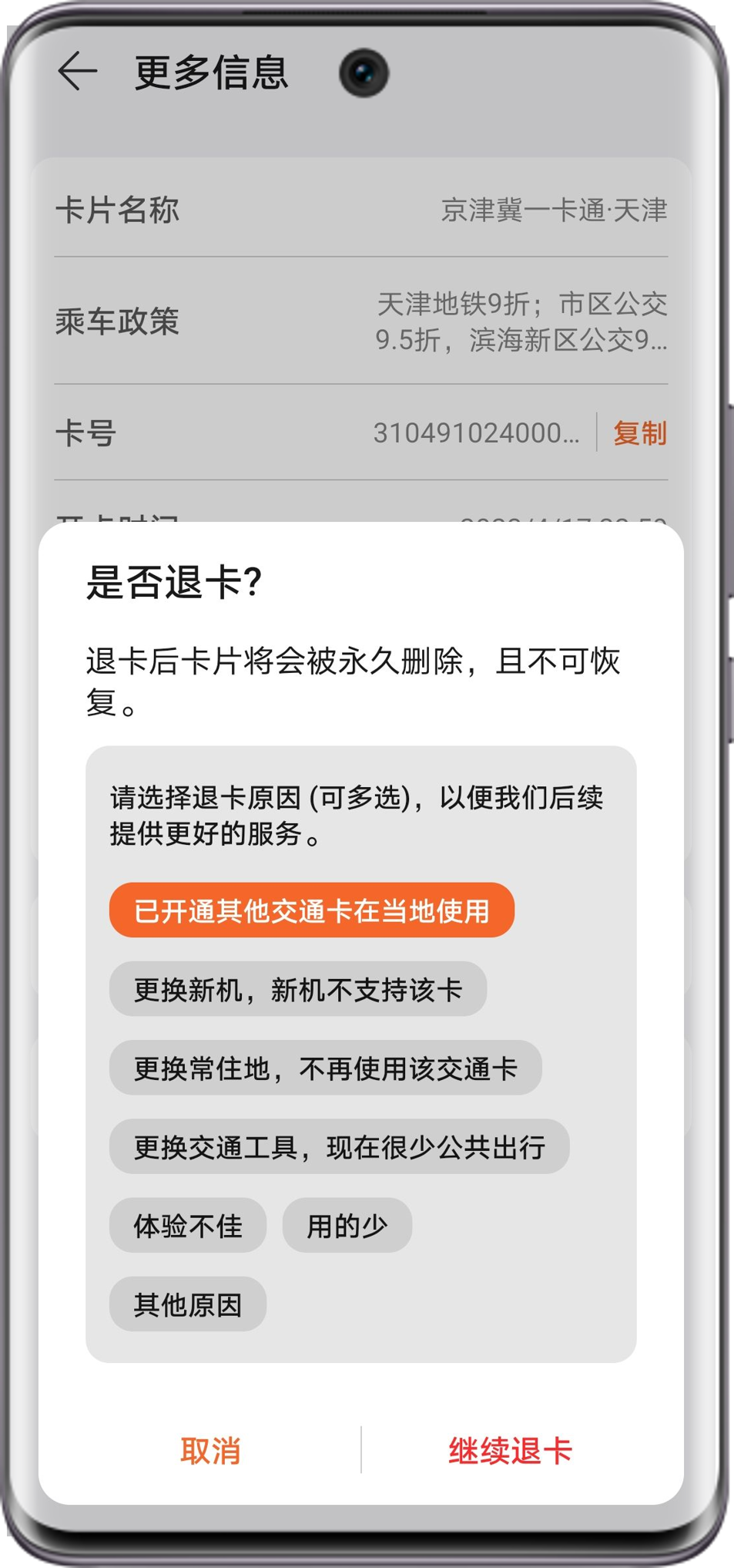 | 荣耀钱包交通卡退卡/退款 |