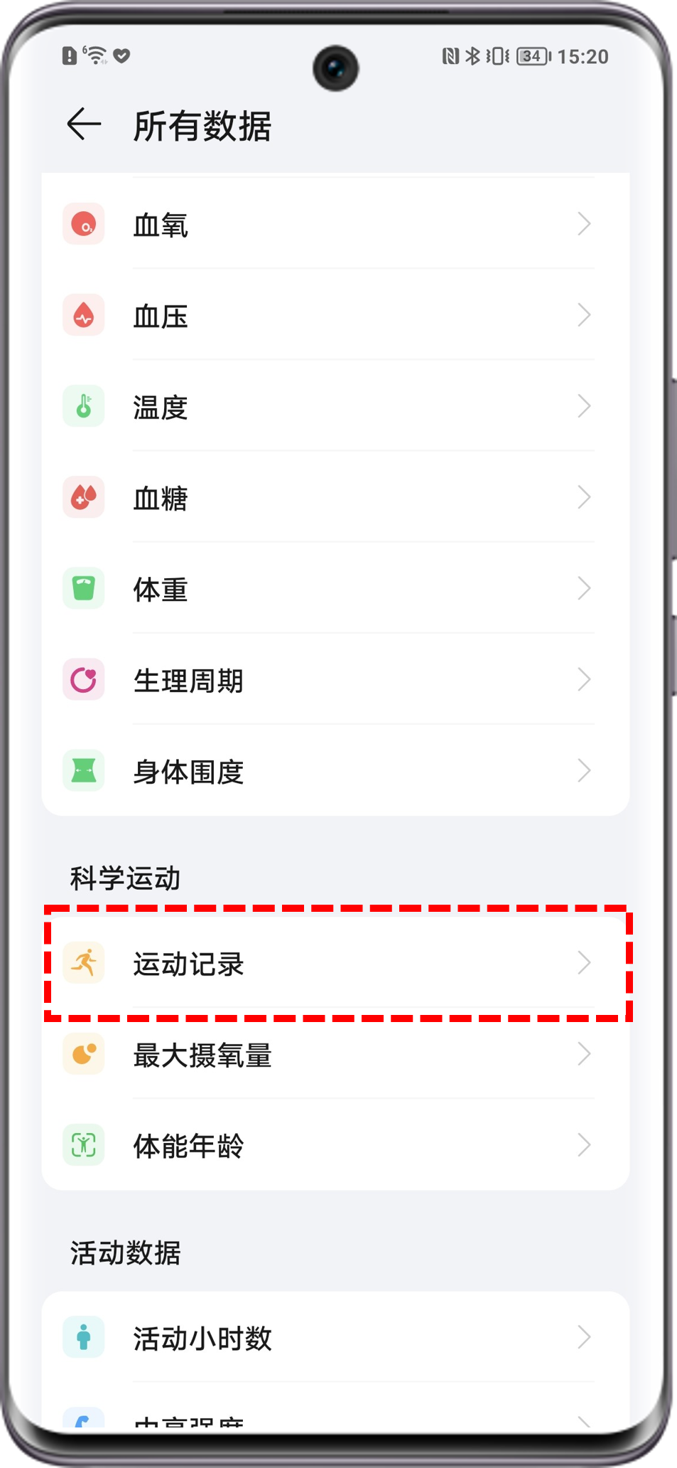 - 荣耀运动健康APP>我的>所有数据>运动记录>选择运动数据>右上角