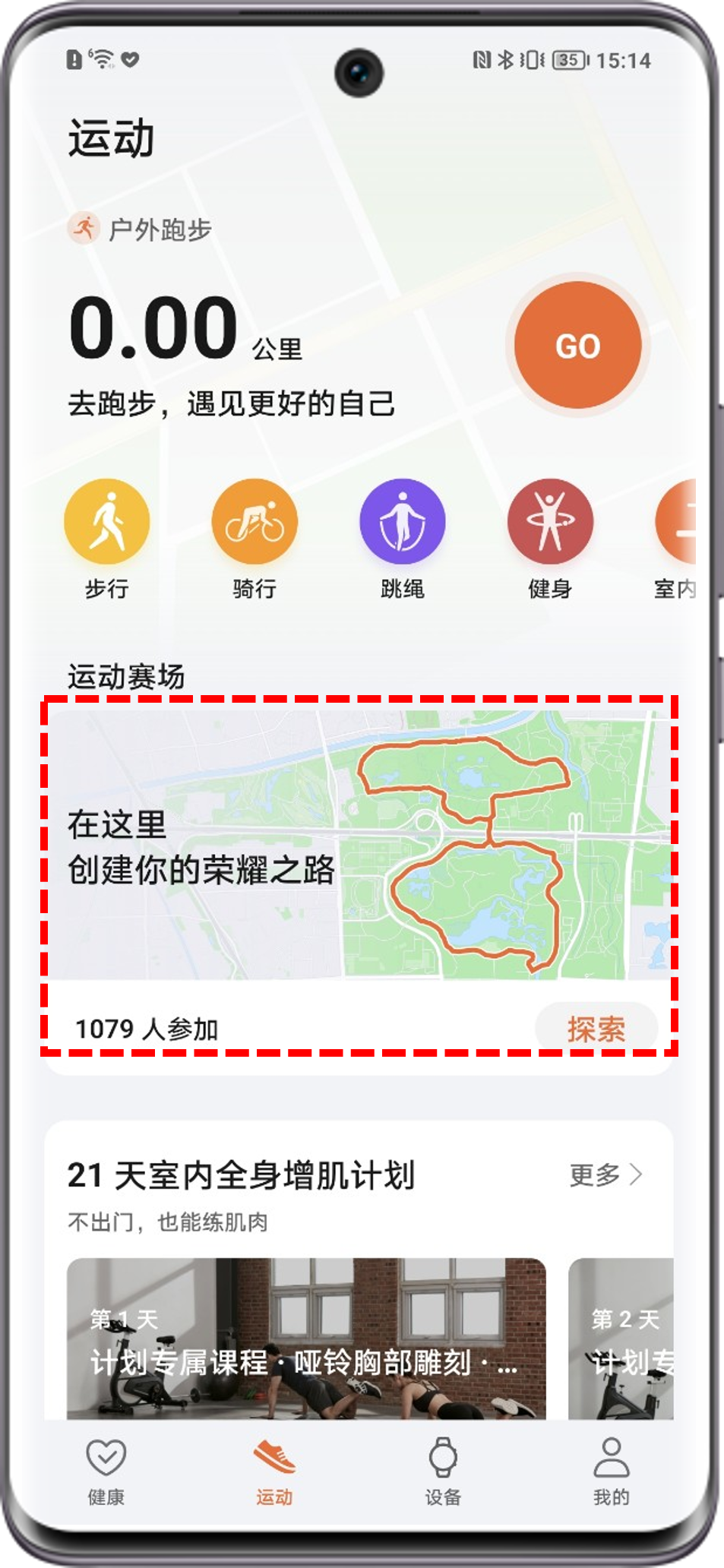 运动赛场支持的运动类型:户外跑步、骑行、步行。