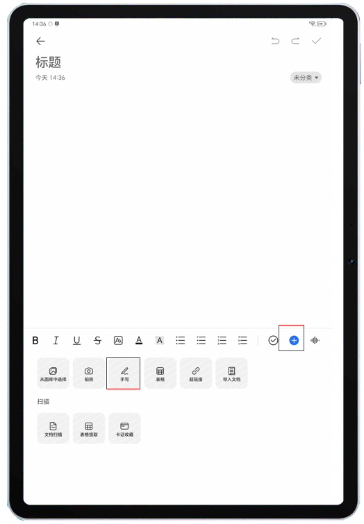 手写笔点击文本笔记内容区域,无法直接进入手写编辑模式