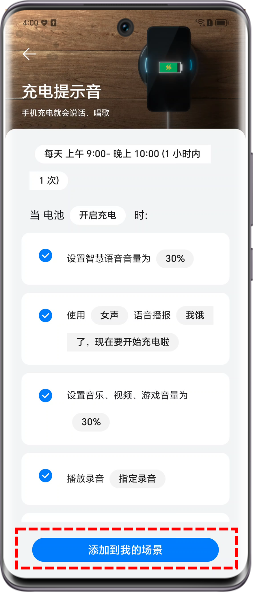 您可以通过荣耀智慧空间-智能场景为荣耀设备设置充电提示音。具体使用条件和方法如下: