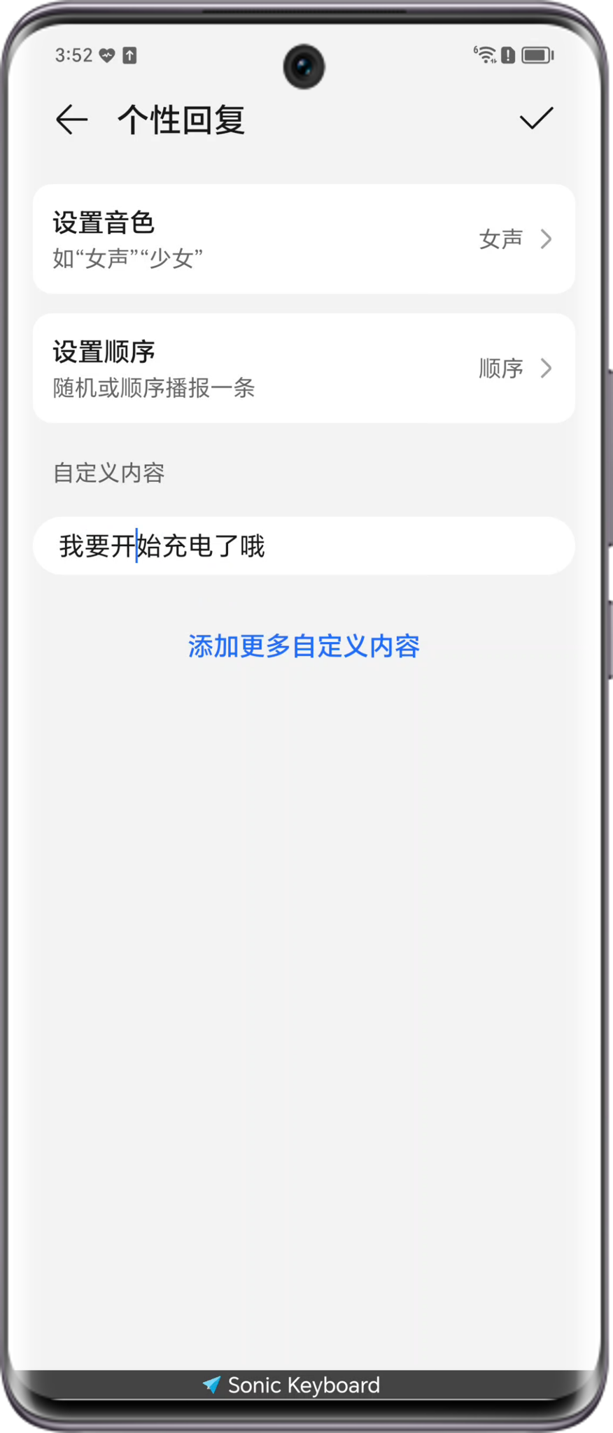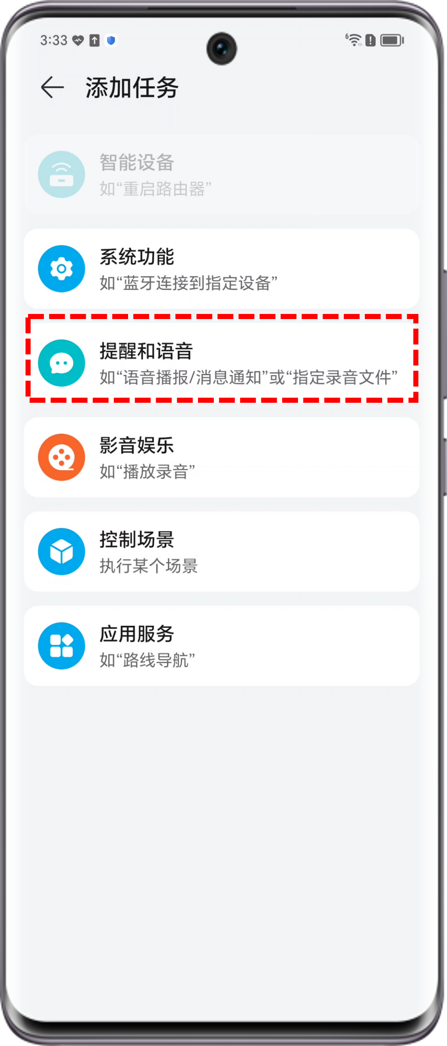 - 添加执行任务(以语音播报为例):在创建场景页面,点击添加执行任务>提醒和语音>语音播报>个性回复>点击右上角√保存