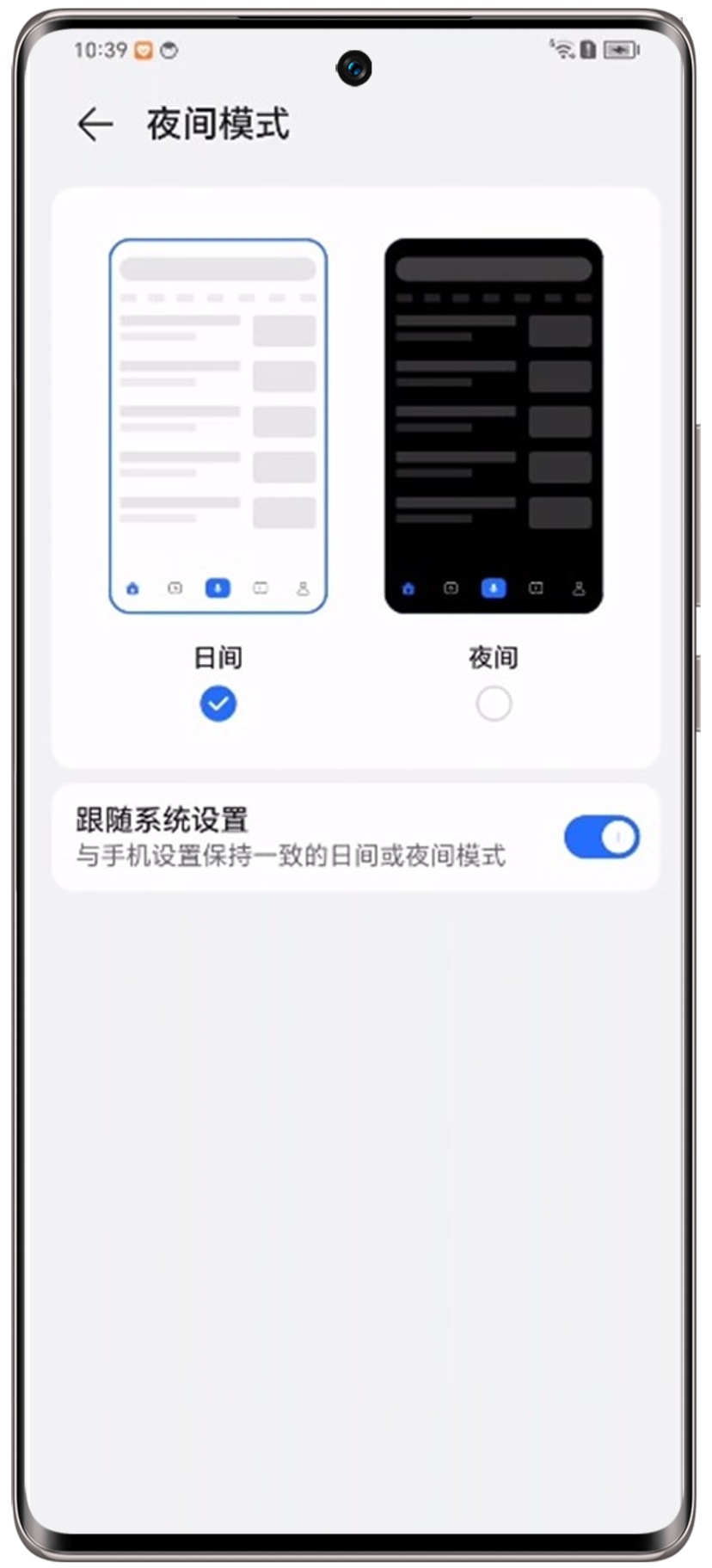 首页>我的>夜间模式>日间模式/夜间模式/跟随系统设置
