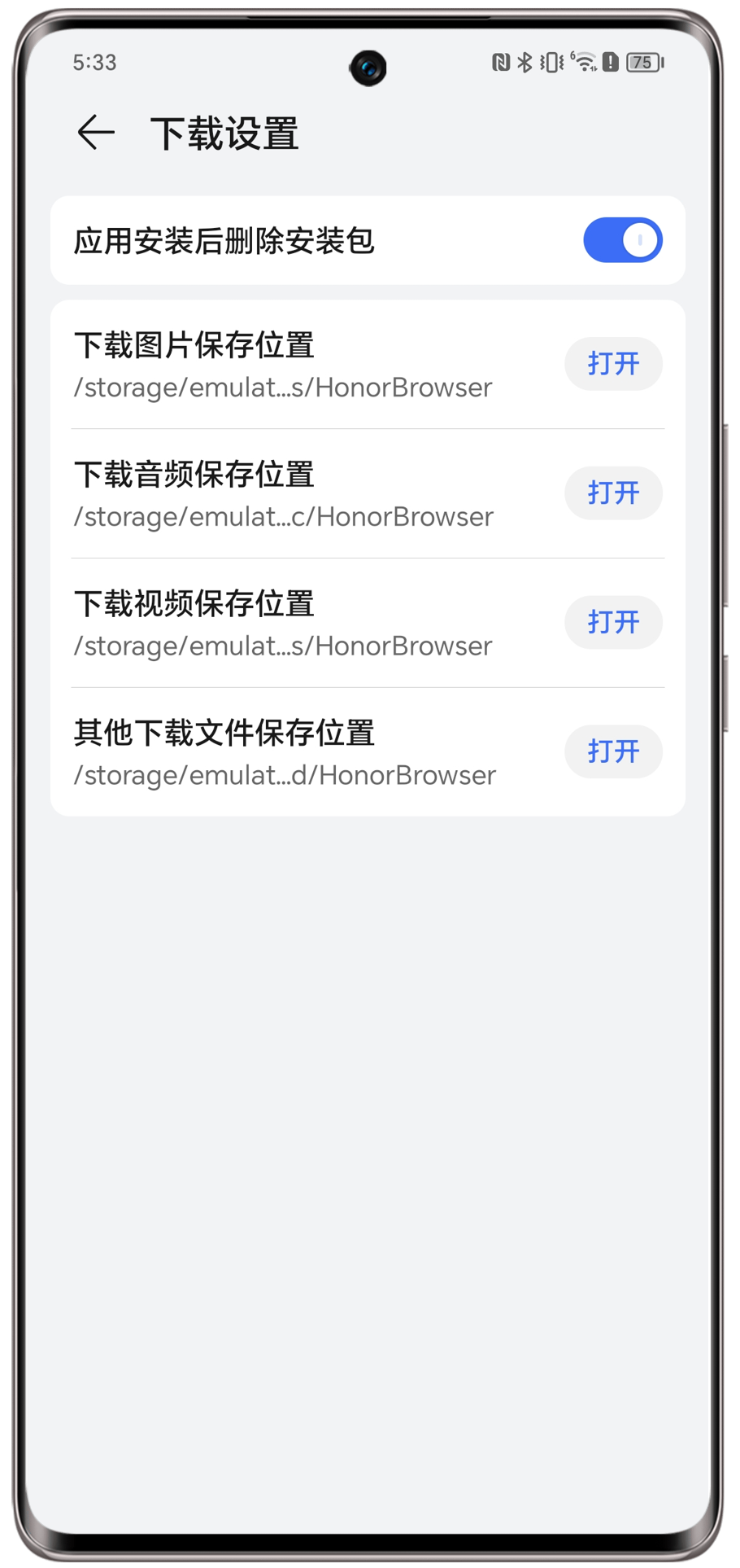 >下载设置,根据文件类型选择打开相关路径